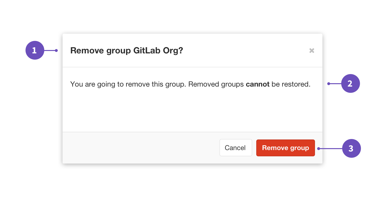 • When the action is irreversible, modals provide the details and confirm with the user before they take an advanced action.